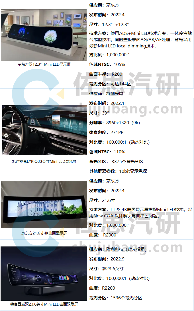在車載顯示市場上,Mini LED一般采用直下式背光,兼具OLED與LCD的優勢,并且不存在OLED讓人頭疼的燒屏問題,產品壽命更長。與OLED相比, Mini LED 背光的良率更高,成本較低,量產方面具有明顯優勢。在顯示性能方面,Mini LED整體亮度、對比度、功耗、曲面顯示上皆優于傳統側入式背光顯示器。Mini LED背光顯示器具有更高的性價比優勢,因此得到汽車整機廠的廣泛認可,車廠采用Mini LED背光顯示器意愿愈發強烈。