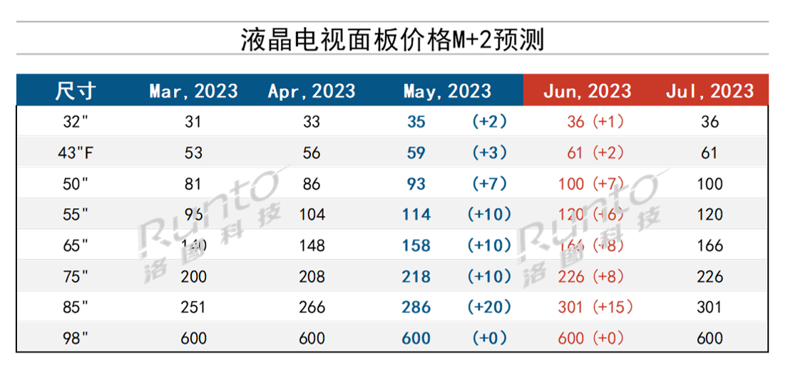 5月21日,洛圖科技發布了2023年6月液晶電視面板的價格趨勢。數據顯示,全球液晶電視面板價格在5月持續上漲,不過并未如期收斂。各尺寸電視的均價持續攀升,85寸電視均價上漲20美元,65和75寸電視均價分別上漲10美元,50和55寸電視分別上漲7和10美元,32和43寸電視分別上漲2-3美元。面板廠商的經營情況和控盤邏輯是影響面板價格的重要因素。