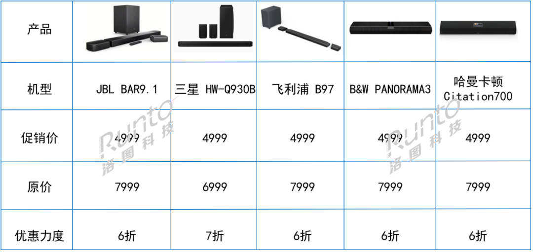 中國Soundbar市場“618”期間暢銷型號優惠力度