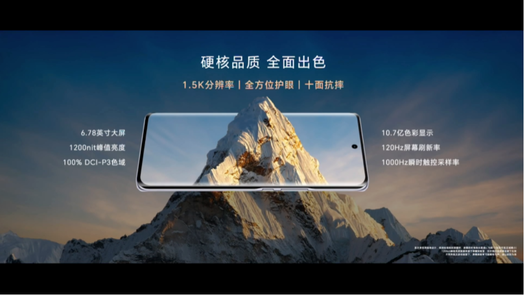 榮耀 X50 采用檔位首款 1.5K AMOLED曲屏(維信諾主供),尺寸為 6.78 英寸,支持 10.7 億色彩顯示、1200nit 峰值亮度、120Hz 屏幕刷新率、100% DCI-P3 色域、1000Hz 瞬時觸控采樣率。
