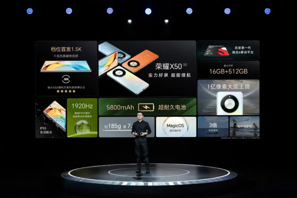 7 月 5 日晚間,榮耀 X50正式亮相,官方稱新機是榮耀十周年登峰之作。