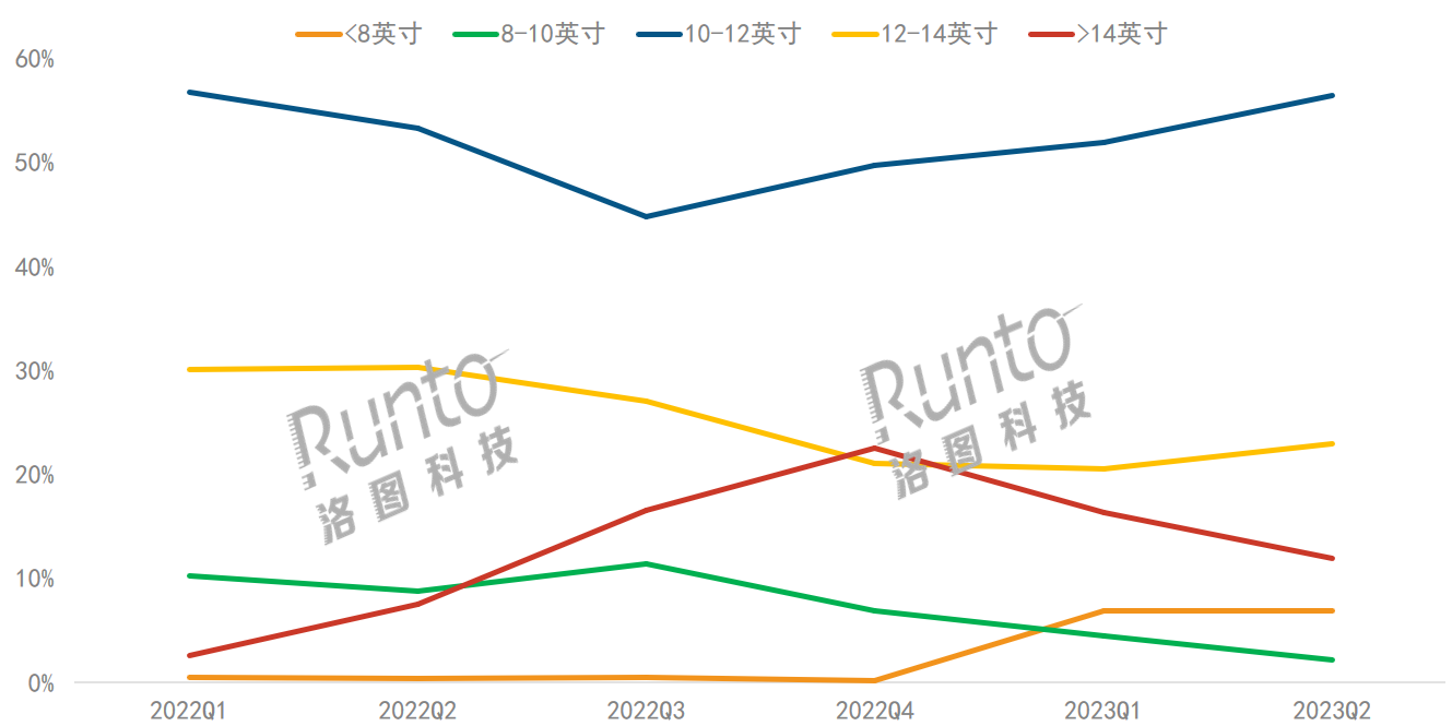 2022-2023Q2 中國學習平板線上市場尺寸銷量結構