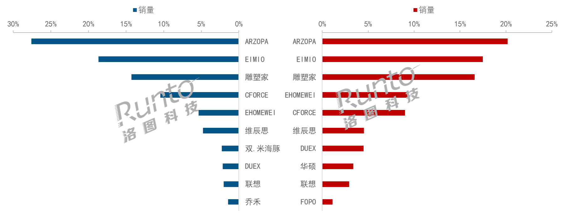 數據來源:洛圖科技(RUNTO) 線上監測數據,單位:%