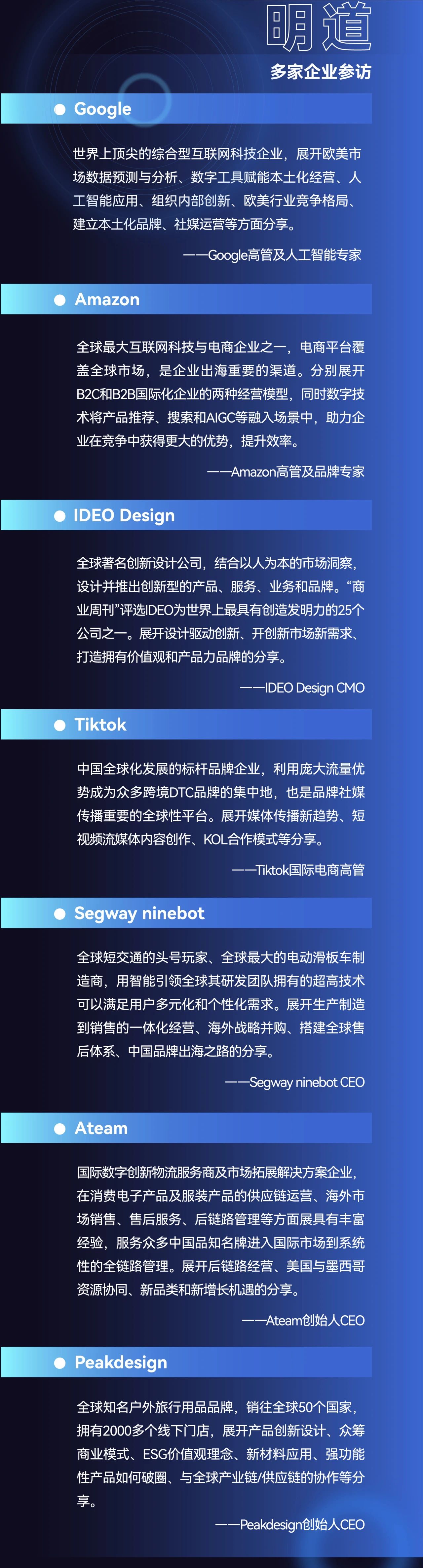 2024年(nian)1月,深(shen)圳市平板顯(xian)示(shi)行業(ye)(ye)協會(SDIA)將(jiang)與(yu)科特勒(le)&Xark導(dao)師團,帶領中國(guo)標桿企業(ye)(ye)、細(xi)分領域冠軍(jun)企業(ye)(ye)、創(chuang)新型(xing)企業(ye)(ye)出行美(mei)國(guo),與(yu)全球領先企業(ye)(ye)面(mian)對面(mian)研(yan)(yan)討,開展(zhan)大型(xing)渠道合(he)作洽談與(yu)投資(zi)平臺(tai)鏈接、頂級教授交流等(deng),同時參加(jia)“2024年(nian)CES美(mei)國(guo)國(guo)際消(xiao)費類電(dian)子(zi)產品(pin)展(zhan)覽”研(yan)(yan)學(xue)營,聆聽(ting)專家解讀(du)智能科技消(xiao)費電(dian)子(zi)和品(pin)牌塑造(zao)新機遇!