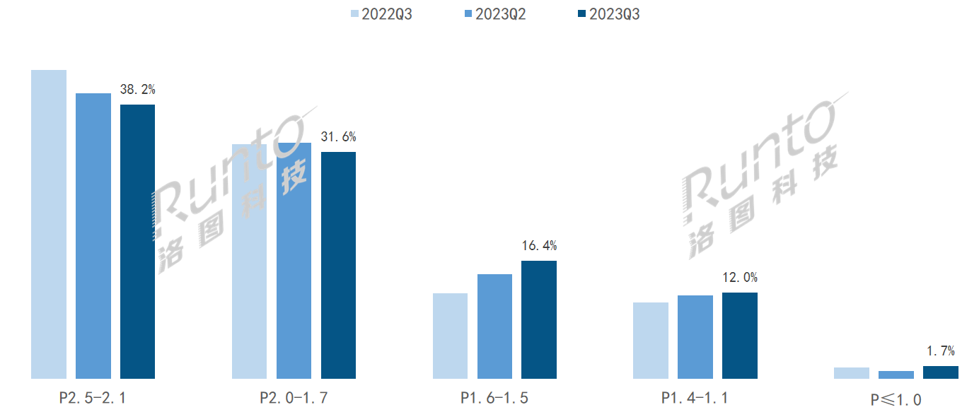 2023Q3 中國大陸小間距LED屏分間距段結構及變化