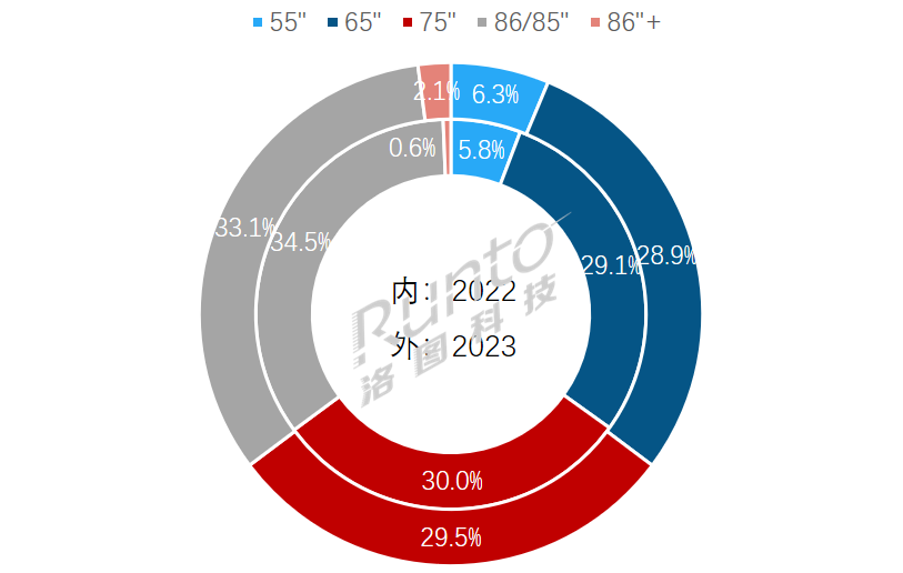 尺寸格局:86/75/65寸合并占91%;86+寸出貨增長2倍以上