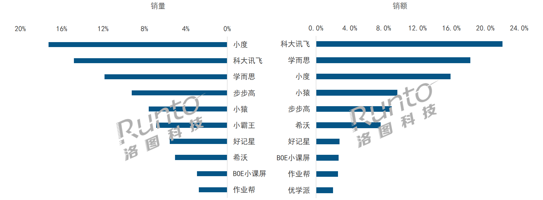 品牌:科大訊飛、學而思、小度、小猿位列銷額前四