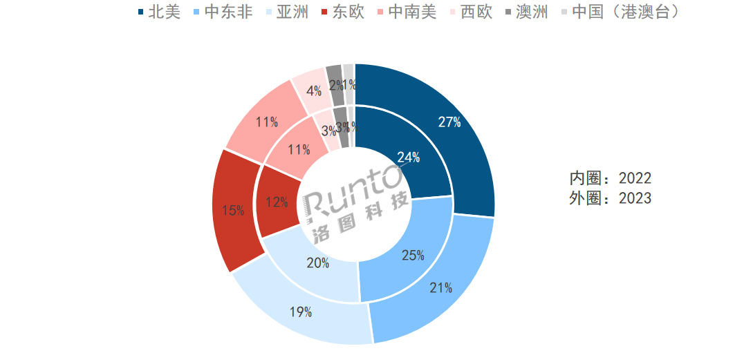2023年 中國大陸液晶電視出口市場區域結構及變化