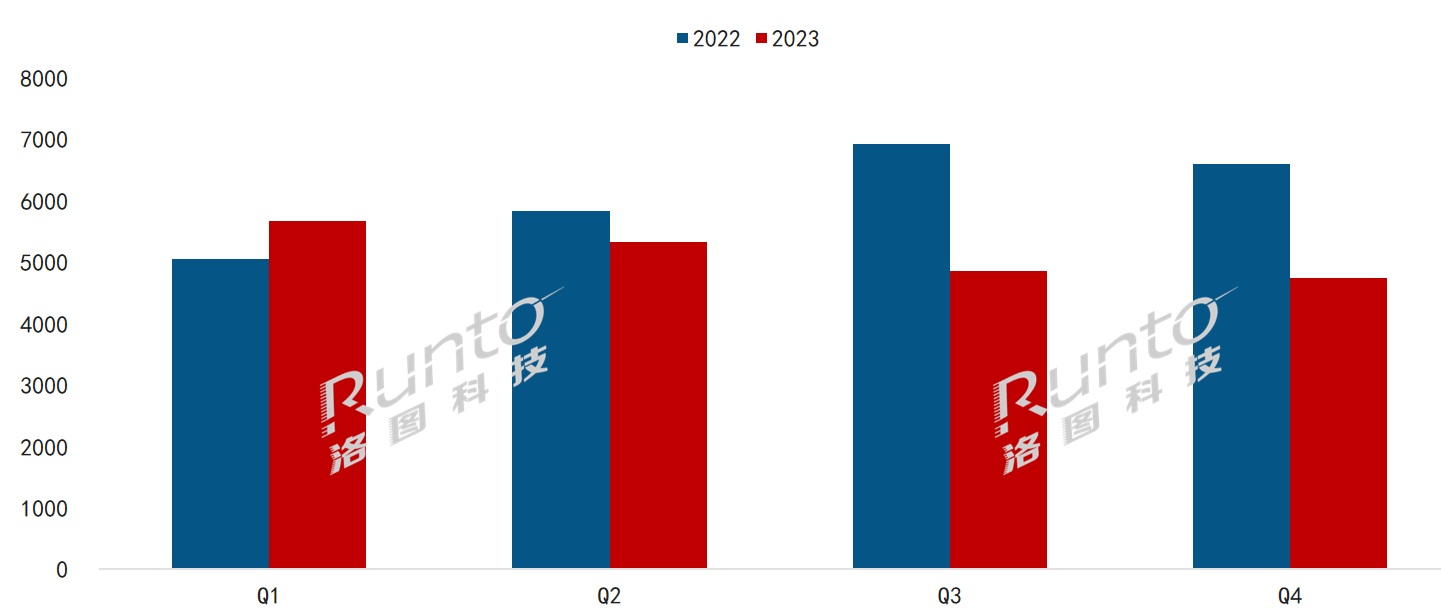2022-2023年 全球電子紙標簽市場季度出貨量及變化