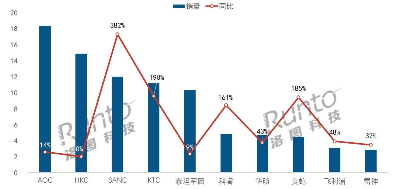 數據來源:洛圖科技(RUNTO)線上監測數據,單位:萬臺,%