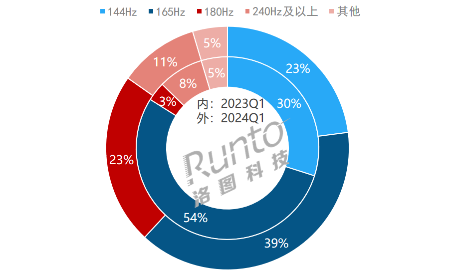2024Q1 中國電競顯示器線上市場刷新率銷量結構