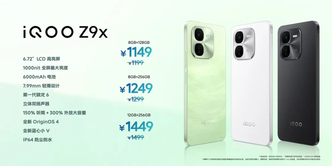 4 月 25 日消(xiao)息,iQOO Z9 系列手機昨日正式發布,其中 iQOO Z9 Turbo 1999 起(qi),iQOO Z9 1499 起(qi),iQOO Z9x 1149 起(qi),4 月 29 日開售,匯總價(jia)格如下: