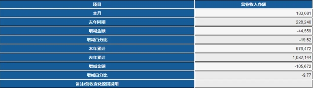 瀚宇彩晶5月營收為8.73億新臺幣(折合人民幣約1.95億元),同比減少13.20%。
