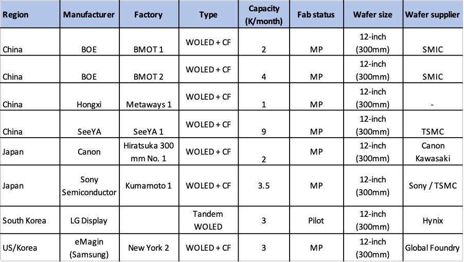對于 OLEDoS,蘋果使用索尼1.3英寸昂貴顯示屏,這導致VR和MR供應商重新考慮 OLED,同時許多新的面板制造商也進入市場。蘋果正在尋找一家基礎成本更低、亮度更高、產能更大的新的面板供應商,并正在與多家公司進行洽談,如下所示。