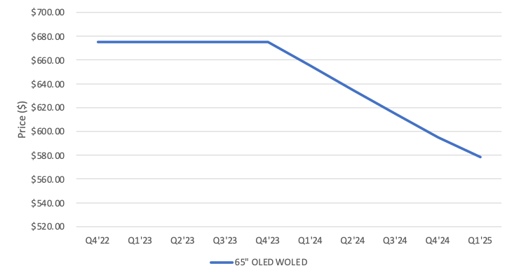 2022-2025年65 英寸OLED面板價格(來源:Omdia)