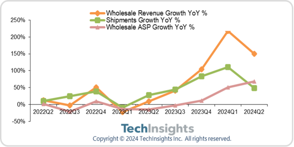 8月14日消息,市場調研機構TechInsights發布報告,稱2024年第二季度,華為全球智能手機出貨量同比增長49%,達到1160萬臺。