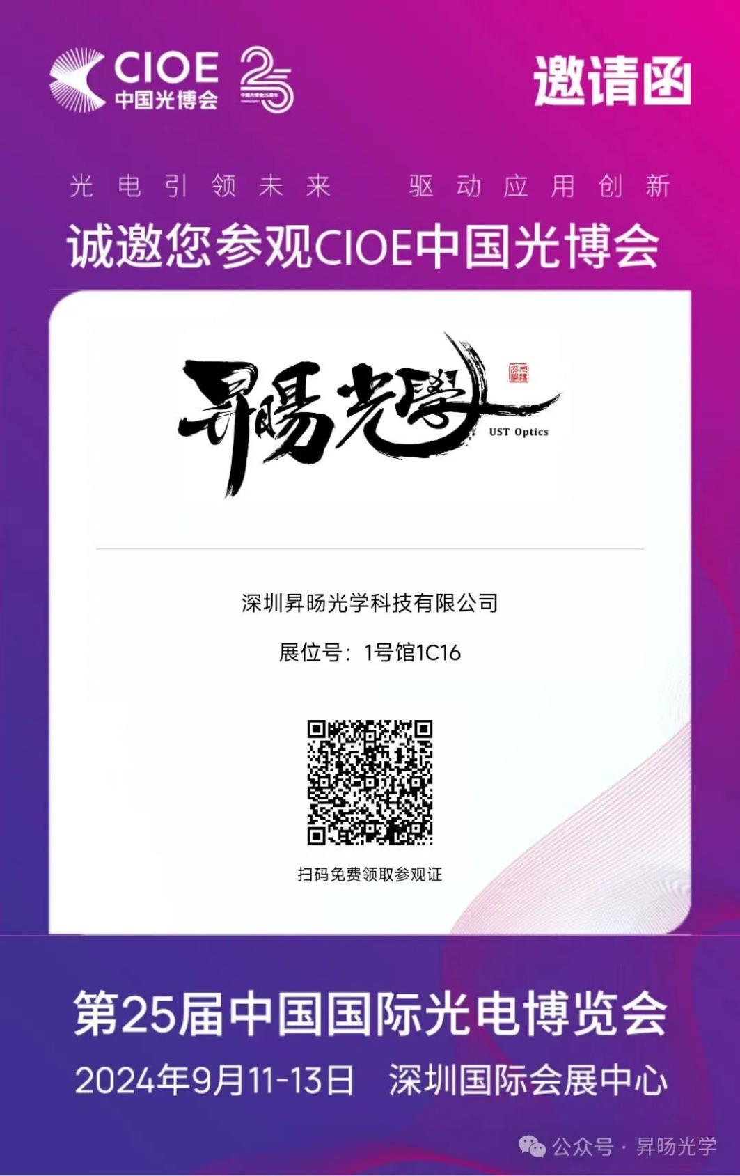 我們誠摯地邀請你參加此次在深圳國際會展中心舉行的CIOE中國光博會。歡迎大家蒞臨昇旸光學展位1號館1C16,與我們一起探討超短焦光學技術并一同展望光場顯示的未來。
