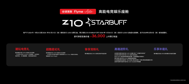 作為星紀魅族與領克聯合打造的首款電競定制版車型,Z10 STARBUFF 針對電競興趣人群進行深度定制,并在領克 Z10 基礎車型上疊加全球首款 Flyme Auto 高能電競娛樂座艙,實現 3A 單機游戲和 PC 端游雙重自由。