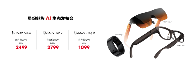 作為星紀魅族旗下的全新智能終端品牌,StarV 在星紀魅族 AI 生態發布會上正式推出三款新品,包括 AR 智能眼鏡StarV Air2、StarV View 以及智能指環 StarV Ring2,為用戶帶來全新的智能穿戴體驗。