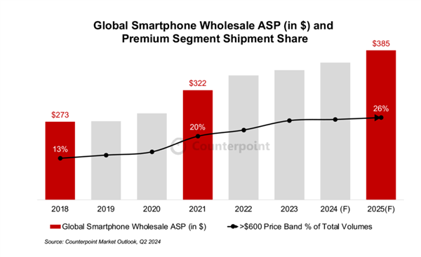 分析指出,這一增長趨勢由多重因素引起,包括智能手機處理器和內存成本提高、算力的提升以及消費者對更高性能和更多功能的需求增加等。