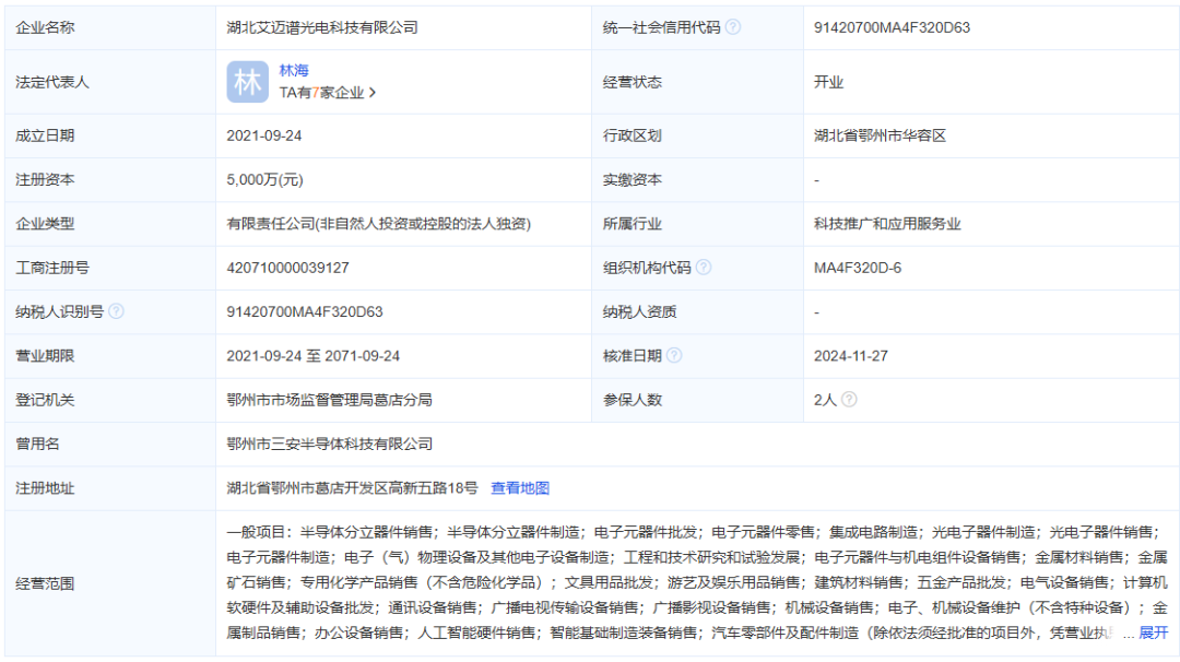 除此以外,公司(si)正(zheng)在研(yan)發全新產(chan)品:AMIP(AM IC & Micro LED in PKG),集(ji)成Micro LED和Micro IC,實現燈驅合一,并通過規模效應逐步降本。資料顯示,艾邁譜光(guang)電成立于(yu)2021年(nian)是三安光(guang)電全資子(zi)公司(si),注冊資本5000萬元(yuan)。2024年(nian),艾邁譜光(guang)電創(chuang)建“艾邁譜”品牌(pai),致力于(yu)打造Micro LED新型顯示技術高端器件品牌(pai)。