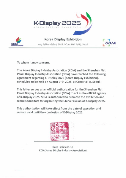 K-Display 2025 China Pavilion_Official Agency_SDIA授權函