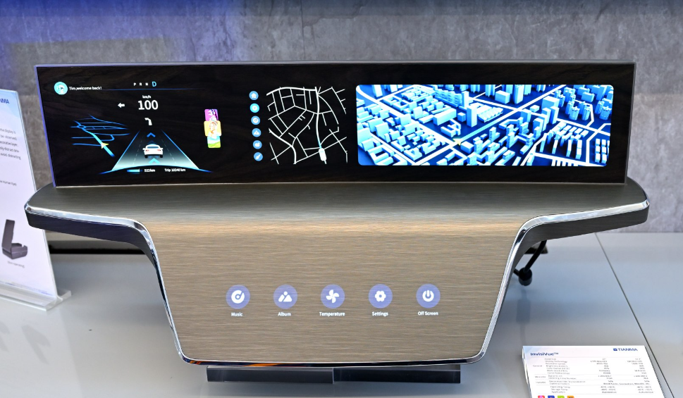 天馬作為全球領先的車載顯示解決方案提供商,一直緊跟市場趨勢,不斷突破技術邊界,持續優化車載顯示產品性能,豐富車載產品矩陣。如今,包括車載 Mini-LED、HUD 抬頭顯示、電子側后視鏡、車載大屏等在內的一系列貼近智駕需求的車載顯示產品均已交付上市,為汽車行業智能化發展注入動力。此外,天馬還高度重視駕駛安全,其自主研發的 CIMUS 視角切換技術,能夠有效實現主副駕之間的信息互不干擾,從而在保障行駛過程中的安全性方面發揮了重要作用。其推出的智能隱藏顯示,息屏時僅能觀察到與內飾融為一體的裝飾紋理,讓駕駛員專注安全行駛。一旦觸控或語音喚醒后,顯示畫面靈敏浮現,可以滿足駕乘者的智駕需求。