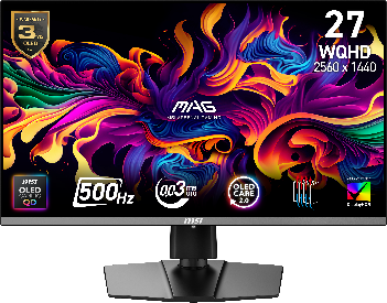 MAG 272QP QD-OLED X50流光顯示器,是微星科技首款27吋2K 500Hz QD-OLED電競顯示器,搭載Samsung Display最新第四代QD-OLED面板,具備500Hz超高刷新率,呈現出色的清晰度、迅捷的反應速度與鮮艷色彩,專為電競玩家打造。其0.03ms GTG反應時間與超低輸入延遲,讓玩家在激烈戰局中執行操作更加精準。通過VESA ClearMR 21000與DisplayHDR True Black 500雙重認證,確保極致動態清晰度與沉浸式視覺體驗,成為競技玩家不可或缺的終極利器。
