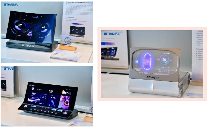 在新技術探索上,天馬著重展示了多款柔性OLED創新顯示技術,面向下一代終端創新場景。如13英寸C&L型曲面車載顯示屏,曲面設計與出色顯示性能為車載交互創造沉浸式視覺空間,提升駕駛體驗;8.07英寸Micro-LED透明顯示,透明特性與高畫質融合,適用于AR、智能車窗等場景,為車載應用拓展更多想象空間;多折柔性OLED顯示屏支持多種折疊、內折與卷曲等形態,探索智能設備新交互方式。