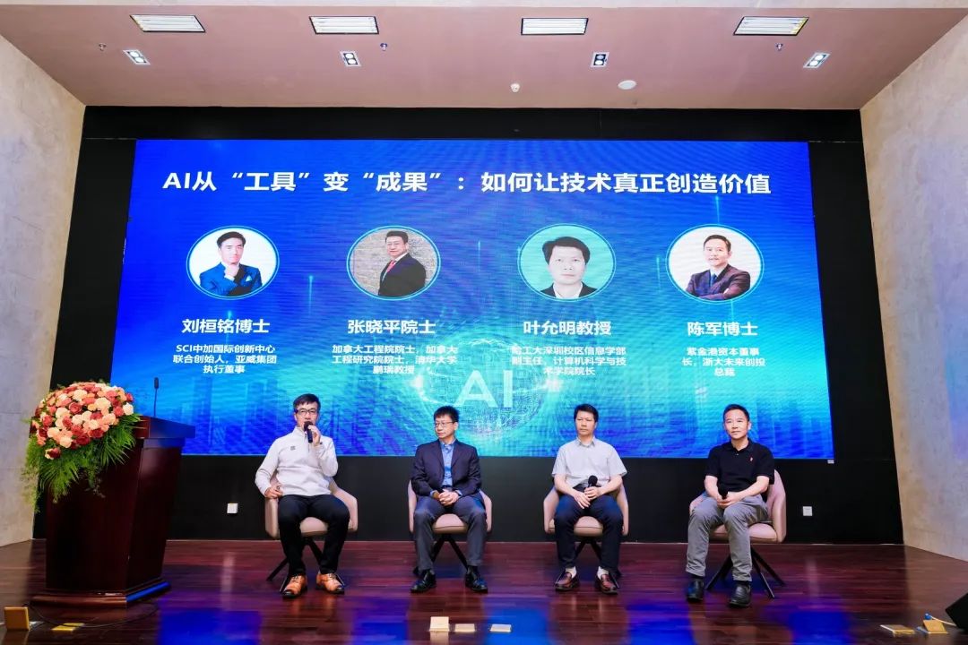 在(zai)圓桌對話環節,加(jia)拿大工程院院士、清華大學(xue)(xue)深圳研究生院張曉平、哈爾濱(bin)工業大學(xue)(xue)(深圳)計(ji)算機科學(xue)(xue)與技術學(xue)(xue)院院長(chang)葉允明、紫金港資本董事(shi)長(chang)陳(chen)軍(jun)、SCI中加國(guo)際創新中心(南粵僑創基地)聯合創始人劉桓銘博士等嘉(jia)賓圍繞“如(ru)何讓技術真(zhen)正創造價(jia)值”這一議題展開多(duo)維話題探討。張曉平院士指(zhi)出,AI技(ji)(ji)術從實驗室走向(xiang)市場(chang)的關(guan)鍵在(zai)于場(chang)景精準定義(yi)與數(shu)(shu)據深度治理;葉允明院長以智慧氣象為例,垂(chui)直領域落地面臨(lin)數(shu)(shu)據質量、基礎(chu)算法、行業深度等跨(kua)學科(ke)協同創(chuang)(chuang)新(xin)是突破技(ji)(ji)術轉化(hua)壁壘的核心(xin)路徑;陳軍董事長從長期資(zi)(zi)(zi)本(ben)視角提出,投資(zi)(zi)(zi)生態對AI技(ji)(ji)術產業化(hua)至關(guan)重要,不同區(qu)域投資(zi)(zi)(zi)人對風險容忍度不同,資(zi)(zi)(zi)本(ben)在(zai)轉化(hua)中角色多(duo)元是當前(qian)AI項(xiang)目投資(zi)(zi)(zi)的核心(xin)考量;劉(liu)桓銘博士則結合南粵(yue)僑(qiao)創(chuang)(chuang)基地實踐,分享了“技(ji)(ji)術孵化(hua)-場(chang)景對接-資(zi)(zi)(zi)本(ben)賦能(neng)”的全鏈(lian)條服務模(mo)式。