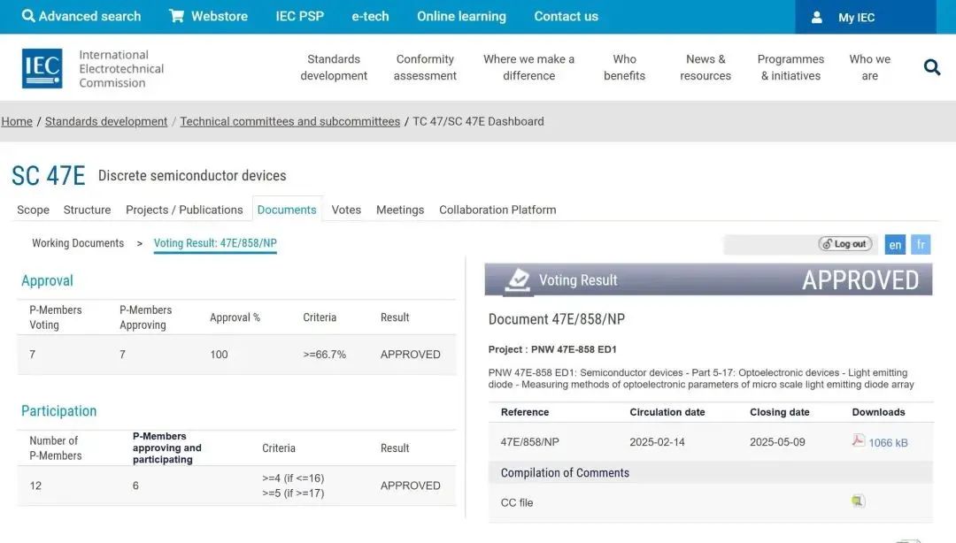 近日,維信(xin)諾(nuo)參股子(zi)公司辰顯光(guang)電(dian)在國際電(dian)工委員會(IEC)牽頭制定的(de)國際標準(zhun)提(ti)案《半導(dao)體器(qi)件 第5-17部分:光(guang)電(dian)子(zi)器(qi)件 發光(guang)二極(ji)(ji)管 微型發光(guang)二極(ji)(ji)管陣列器(qi)件光(guang)電(dian)參數測試方法》通過(guo)了新工作(zuo)項目提(ti)案(NP)投(tou)票(piao)。NP投(tou)票(piao)是國際標準(zhun)從提(ti)案建(jian)議階段(duan)進入正(zheng)式起草階段(duan)的(de)重要節點(dian),通常由國家成員體提(ti)出申請,國際標準(zhun)化組織按照(zhao)“一(yi)國一(yi)票(piao)”的(de)原(yuan)則組織各成員國進行投(tou)票(piao)表決(jue)。