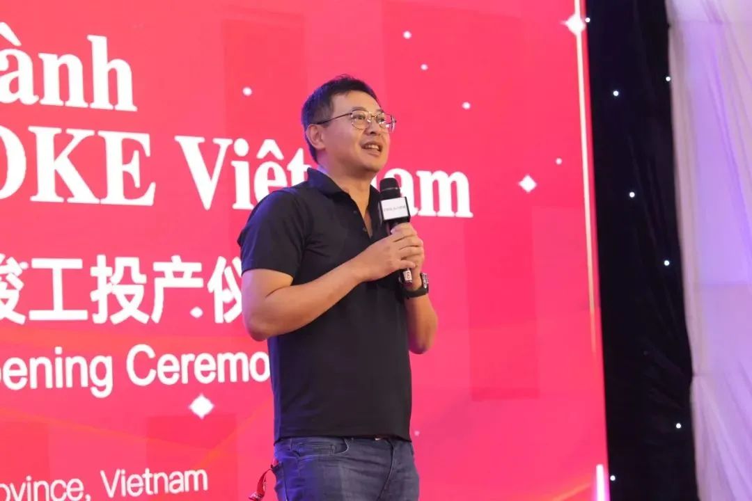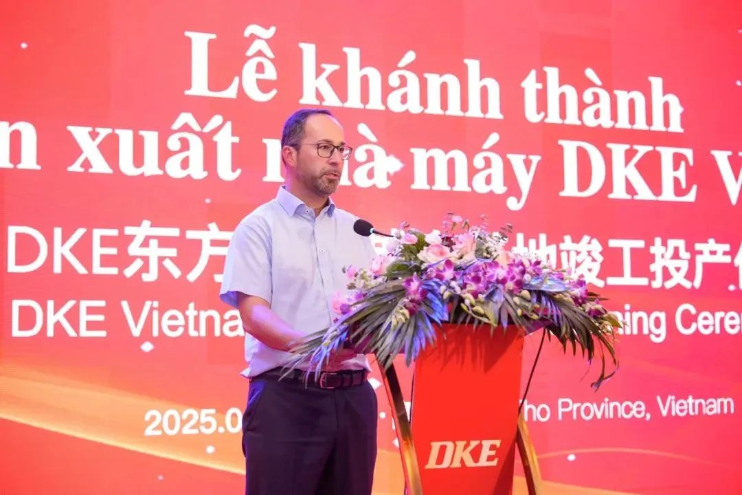 Vusion Group SVP Christian上臺致辭。他對雙方多年來的豐碩合作成果給予高度評價,對DKE越南基地的建成與戰略遠見進行了肯定。越南基地的竣工投產標志著DKE國際化交付能力的重大提升,他期待未來雙方能夠深化全球化戰略伙伴關系,共同開拓更廣闊的市場。