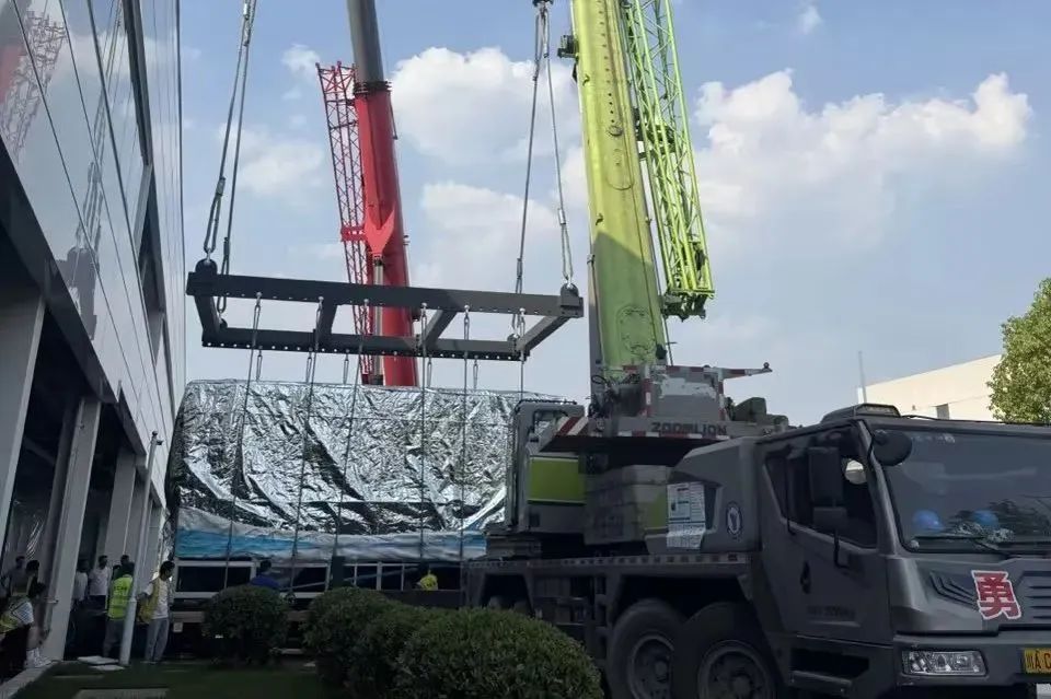 作為(wei)國內首臺(tai)G8.6代(dai)AMOLED TSP OS檢測設備,60噸的重量不僅(jin)意味(wei)著(zhu)結構復雜、精度要求極高,更(geng)對運輸、安裝提出(chu)了(le)嚴苛挑戰。從廠房調試到(dao)裝車(che)運輸,再(zai)到(dao)客(ke)戶現場(chang)的精準就(jiu)位(wei),公司克服了(le)設備體型龐大(da)、運輸路線規(gui)劃、環境適應性等多重難題,最終以“零誤差”完成交付(fu)。