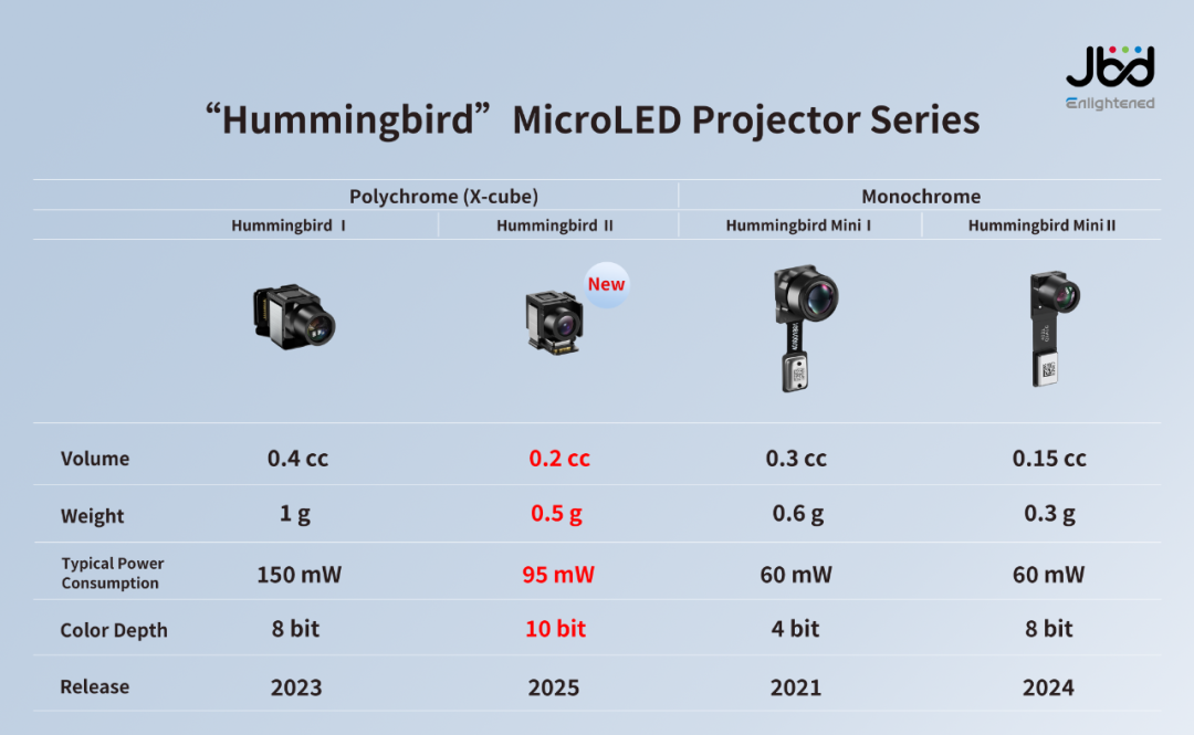 JBD“蜂(feng)鳥”MicroLED光引擎家族