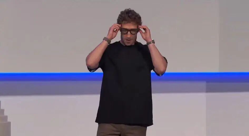 扎克伯格現場演示了Meta Ray-Ban Display眼鏡的手勢打字、視頻通話、音量調節、實時字幕等功能。但在視頻通話展示時出現狀況,扎克伯格試圖展示接聽Meta首席技術官Boz的視頻電話,但不知為何,他似乎無法接聽。
