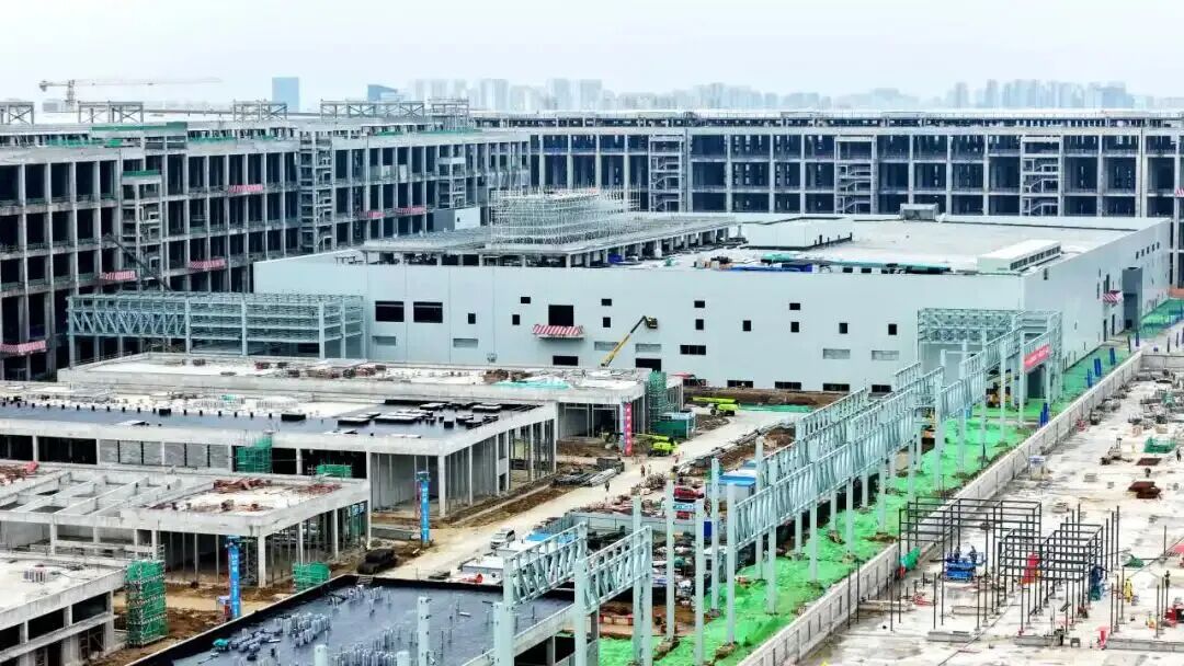 項目開工以來,新站高新區持續優化項目全周期服務,強化要素保障,及時協調解決項目推進中的問題,全力推動項目各關鍵節點高效銜接。今年8月11日,約80萬平方米的主廠房工程,僅用168天率先實現封頂,刷新全球同類規模廠房建設速度紀錄。