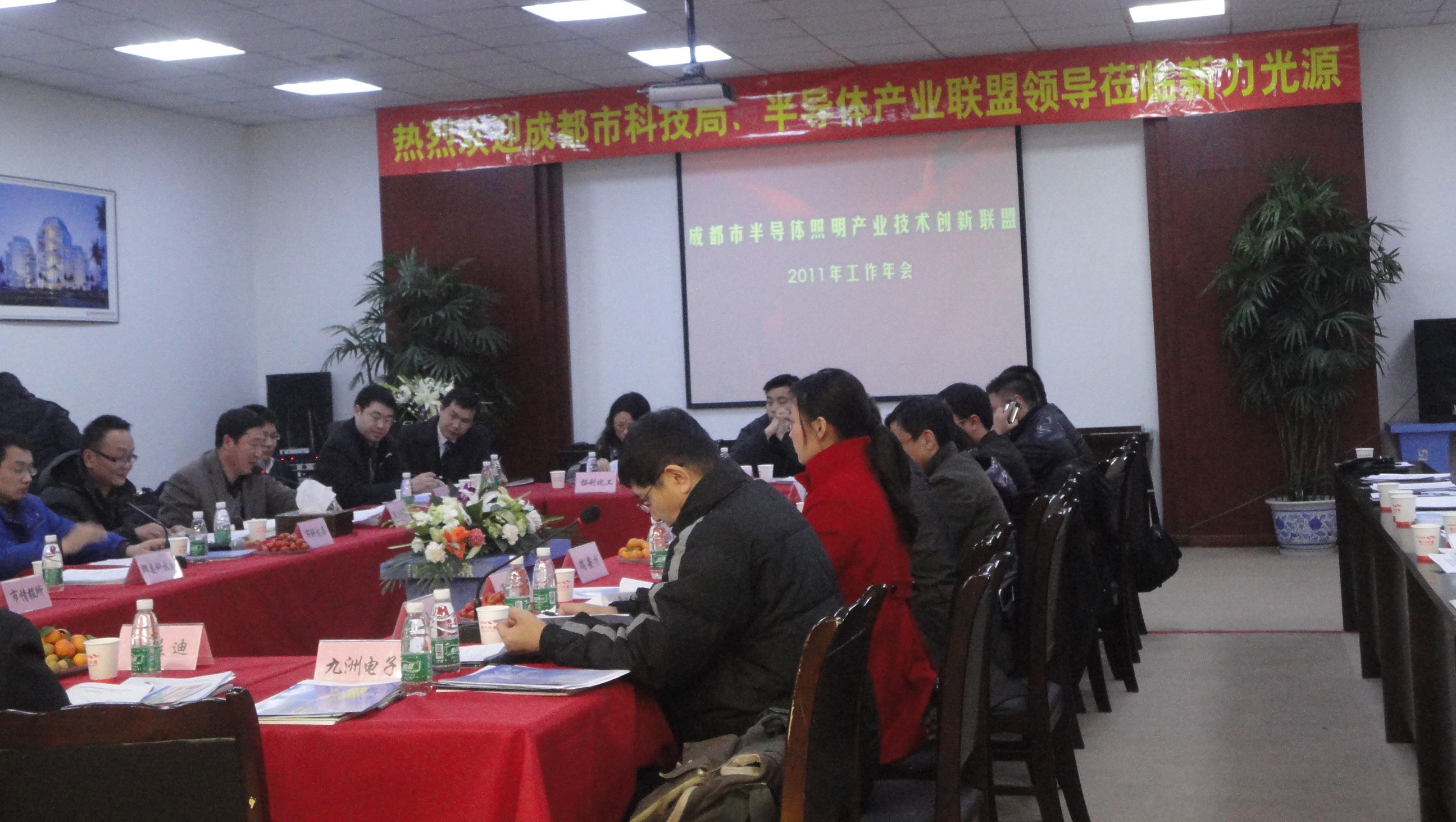 日前(12日),成都市科技局、成都市科學技術情報所以及四川新力光源、九洲光電、電子科技大學、源力光電、勤上光電、瑞安特等30余家聯盟成員單位負責人,在四川新力公司匯聚一堂,新力光源公司張明總裁主持召開成都市半導體照明產業技術創新聯盟2011年工作會議。