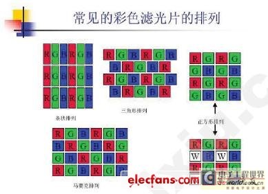 下圖是常見的彩色濾光片的排列方式。條狀排列(stripe)最常使用于OA 的產品, 也就是我們常見的筆記型計算機,或是桌上型計算機等等。為什么這種應用要用條狀排列的方式呢? 原因是現在的軟件,多半都是窗口化的接口。也就是說, 我們所看到的屏幕內容,就是一大堆大小不等的方框所組成的. 而條狀排列,恰好可以使這些方框邊緣, 看起來更筆直,而不會有一條直線, 看起來會有毛邊或是鋸齒狀的感覺。但是如果是應用在AV 產品上, 就不一樣了。因為電視信號多半是人物,人物的線條不是筆直的, 其輪廓大部分是不規則的曲線。因此一開始, 使用于AV 產品都是使用馬賽克排列(mosaic,或是稱為對角形排列)。不過最近的AV產品,多已改進到使用三角形排列(triangle,或是稱為delta排列)。.除了上述的排列方式之外, 還有一種排列, 叫做正方形排列。它跟前面幾個不一樣的地方在于它并不是以三個點來當作一個pixel,而是以四個點來當作一個pixel. 而四個點組合起來剛好形成一個正方形。