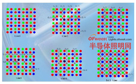 Time2:與黃色標注一樣的燈組合將構成一個像素。產生4行3列的像素。