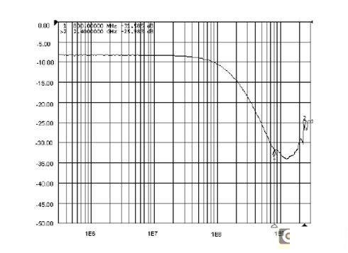 隨著手機及相機等便攜式設備中LCD顯示屏分辨率的提高,視頻信號的傳輸速率也越來越高,傳統的濾波器方案已慢慢達到它們的技術極限。在配有高分辨率顯示屏及嵌入式相機的手機中,信號是通過特定頻率(取決于分辨率)從基帶ASIC被傳送至 LCD及內嵌的相機上。視頻分辨率越高,數據工作的頻率亦越高。比如,對于30至60萬像素的相機模塊來說,時鐘頻率大約介于6至12MHz之間。因此建議將濾波器(上下)截止頻率選擇在30至50MHz范圍內。隨著分辨率的提高到數百萬像素,時鐘頻率已超過60MHz,這要求濾波器的截止頻率高達 300MHz。
