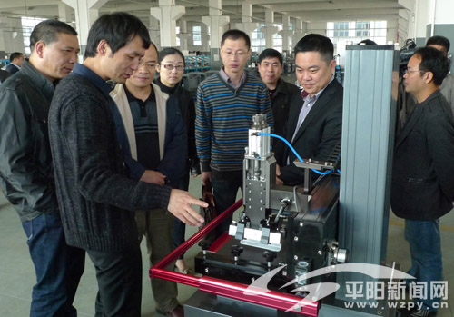 浙江勁豹機械有限公司通過自主研發對現有設備進行升級,從而涉足電阻式觸摸屏面板印刷這一高新技術領域。日前,該企業與某國際知名一線品牌手機廠商簽約,為其印刷手機觸摸屏面板。圖為企業負責人介紹新產品性能