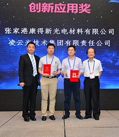深圳市平板顯示行業協會常務副秘書長郭灝明、南京平板顯示行業協會副會長薛文進向張家港康得新光電材料有限公司、凌云光技術集團有限責任公司頒發“創新應用獎”